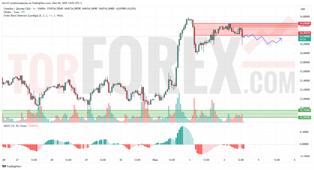 Прогноз Серебро Доллар XAG/USD на 5 июня 2025
