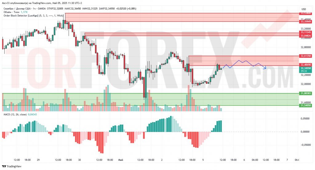 С высокой вероятностью ожидается боковое движение в диапазоне 32.35–32.60 с последующим снижением к 32.00 и, возможно, тестом 31.80 при отказе покупателей от пробоя сопротивления.