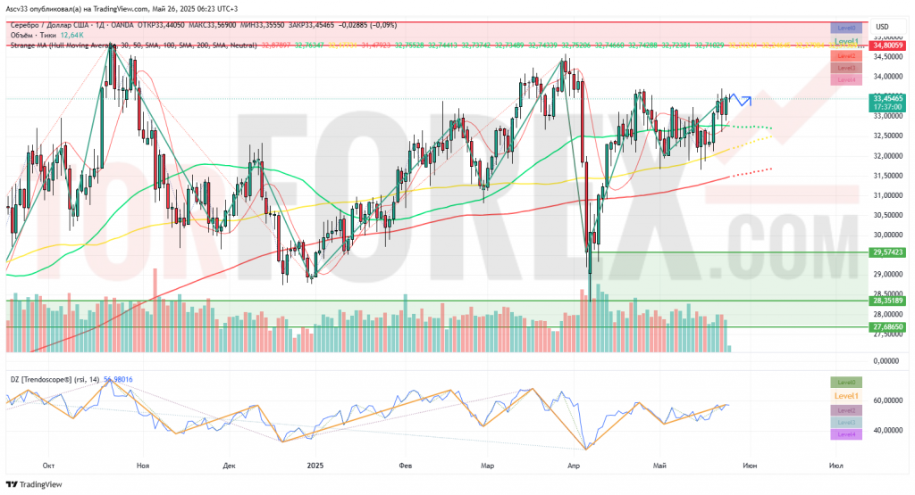 Прогноз Серебро Доллар XAG/USD на неделю 26 мая — 1 июня 2025