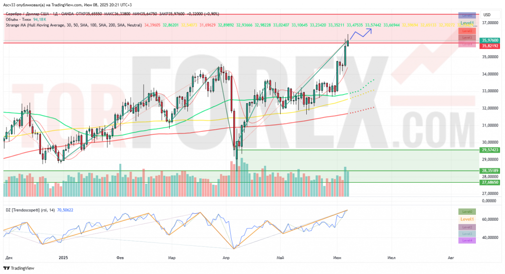 При закреплении выше $36,00 откроется путь к $36,40 и далее — к $37,00, при условии сохранения объёмов и стабильности на товарных рынках.