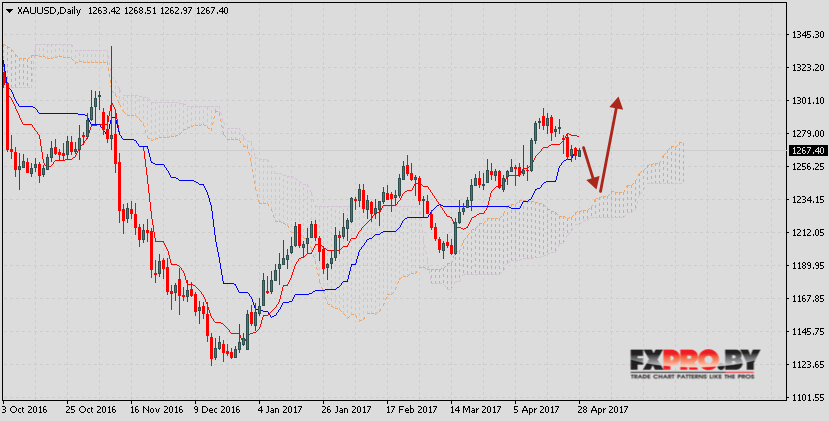 Ichimoku Kinko Hyo прогноз XAU/USD на 1 — 5 мая 2017