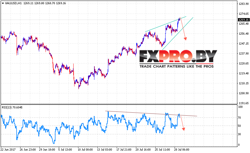 Таким образом, XAU/USD прогноз Форекс цен на Золото на 1 августа 2017 предполагает попытку падения в рамках отработки модели Клин с потенциальной целью снижения вблизи области 1245, отменой выступит пробой уровня 1275.