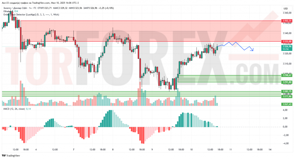 Ожидается движение в диапазоне 3298–3330 с возможным откатом от текущих уровней. При пробое 3298 вниз цена может вернуться в зону 3282. Сценарий — нейтрально-медвежий.
