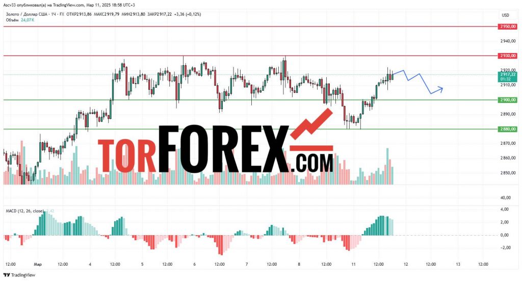 С высокой вероятностью XAU/USD останется в диапазоне $2,900–$2,930 в течение следующих суток. Прорыв $2,930 вверх может усилить бычий импульс, тогда как снижение ниже $2,900 увеличит вероятность коррекционного движения. Трейдерам стоит внимательно следить за реакцией рынка вблизи этих уровней, так как их пробой определит дальнейшее направление движения золота.