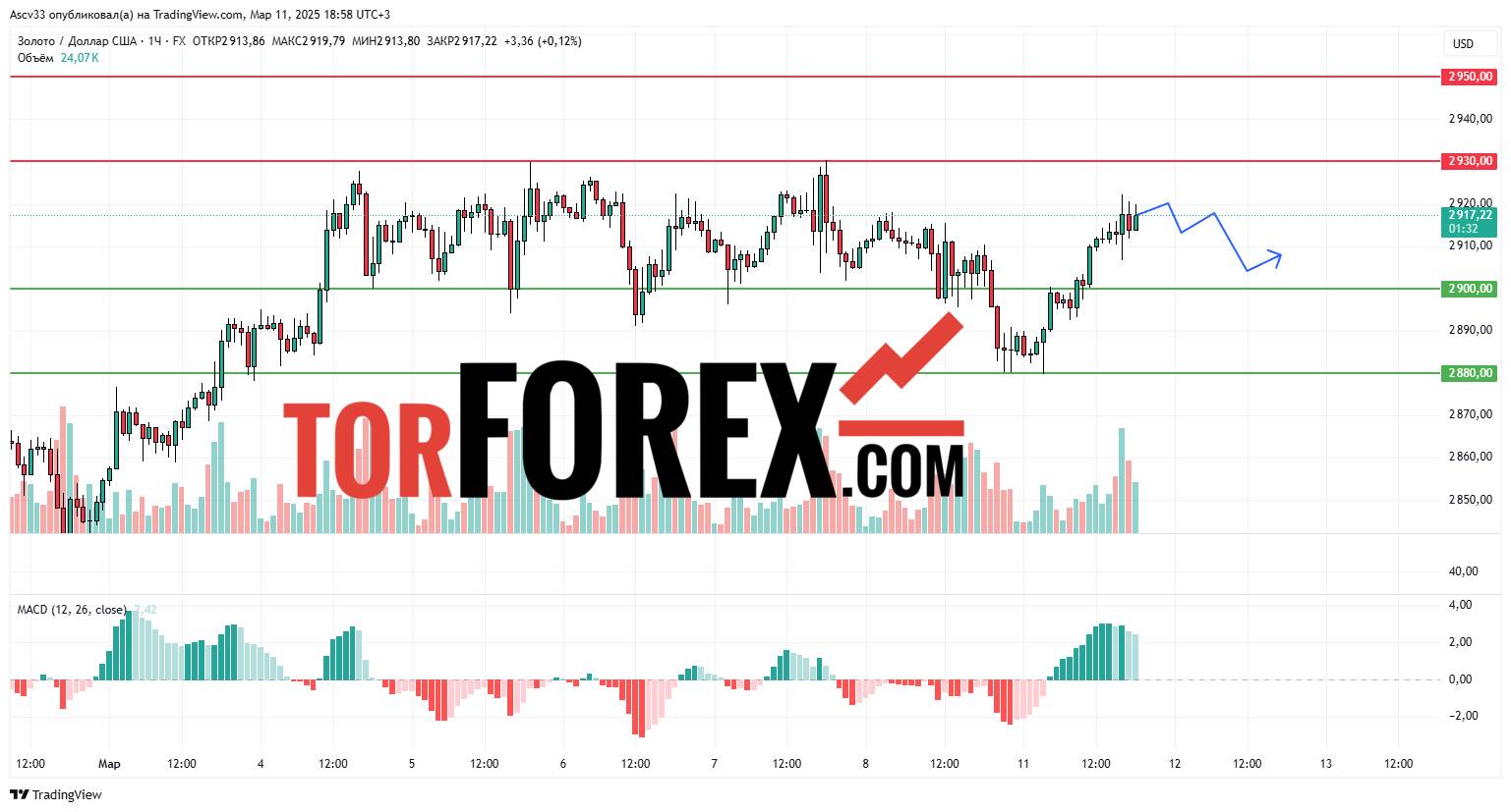 Прогноз Золото Доллар XAU/USD на 12 марта 2025