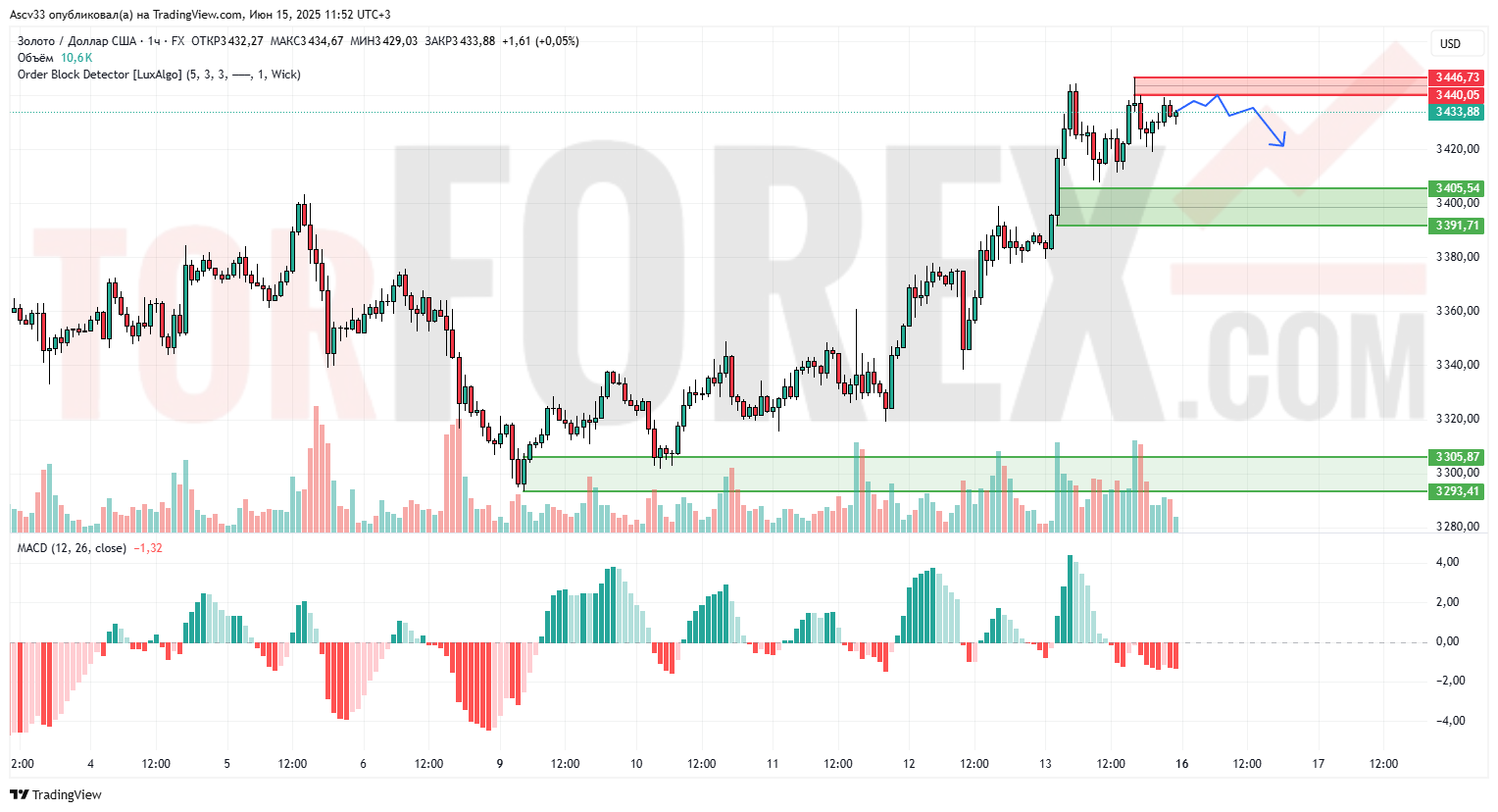 3440,05–3446,73 — свежая зона предложения, в которой наблюдается замедление роста.