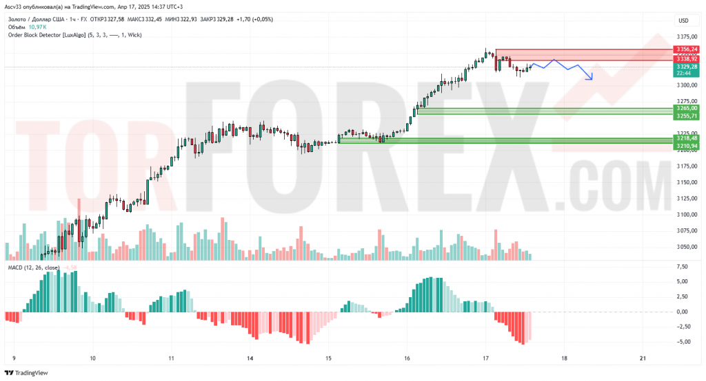 Ожидается коррекционное снижение с целями 3265 и 3255 при удержании сопротивления 3339. Пробой выше 3339 отменит негативный сценарий и откроет путь к повторному тесту 3356.