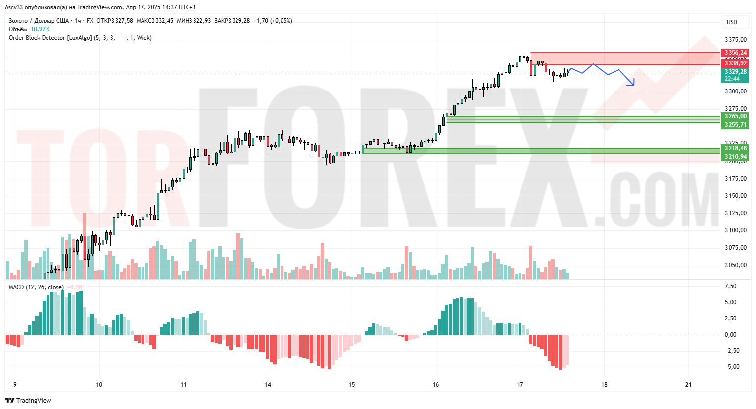 3339 — ближайшее сопротивление, ограничивает рост с начала 17 апреля;