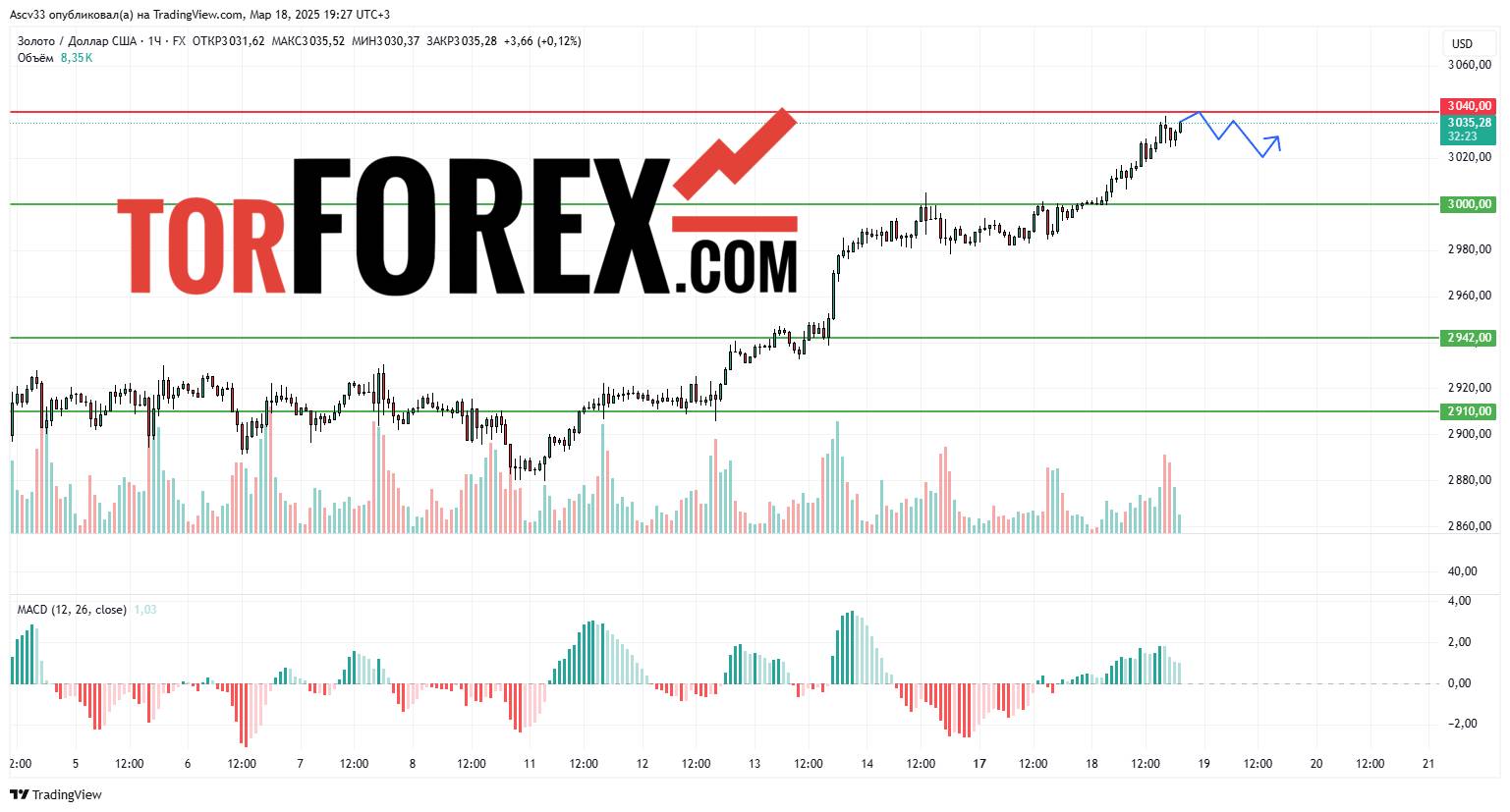 Скорее всего, XAU/USD останется в диапазоне $3 000–$3 040 в течение следующих суток. Прорыв $3 040 вверх создаст условия для продолжения роста, тогда как закрепление ниже $3 000 усилит нисходящий импульс. Трейдерам рекомендуется следить за реакцией рынка у этих уровней, так как их пробой определит дальнейшую динамику золота.