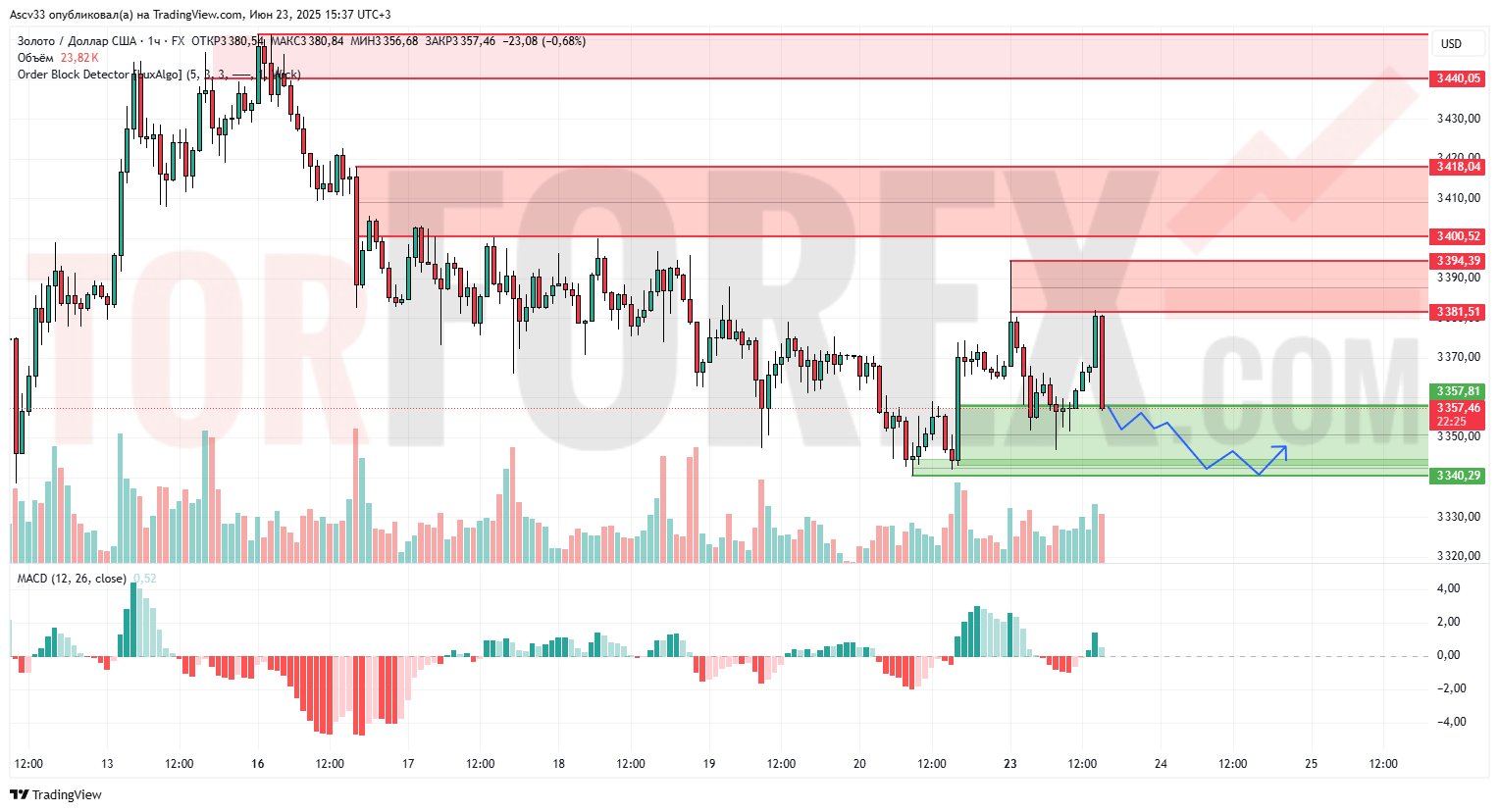 3 357,8–3 340,3 — ближайшая поддержка, куда уже зашла цена, и в которой ранее была зона спроса.
