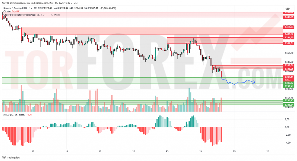 Ожидается консолидация или слабая коррекция вблизи зоны 3 305–3 293, с возможным снижением к 3 255, если давление продавцов сохранится. Пробой вверх зоны 3 333 отменит краткосрочный медвежий сценарий.