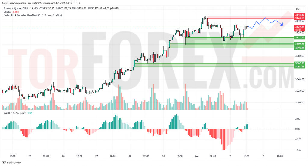 В ближайшие 24 часа вероятна консолидация в диапазоне 3 130–3 145. При пробое ниже 3 120 цена может протестировать область 3 100. Однако пробой вверх уровня 3 148 активирует дальнейшее восходящее движение к новым максимумам.