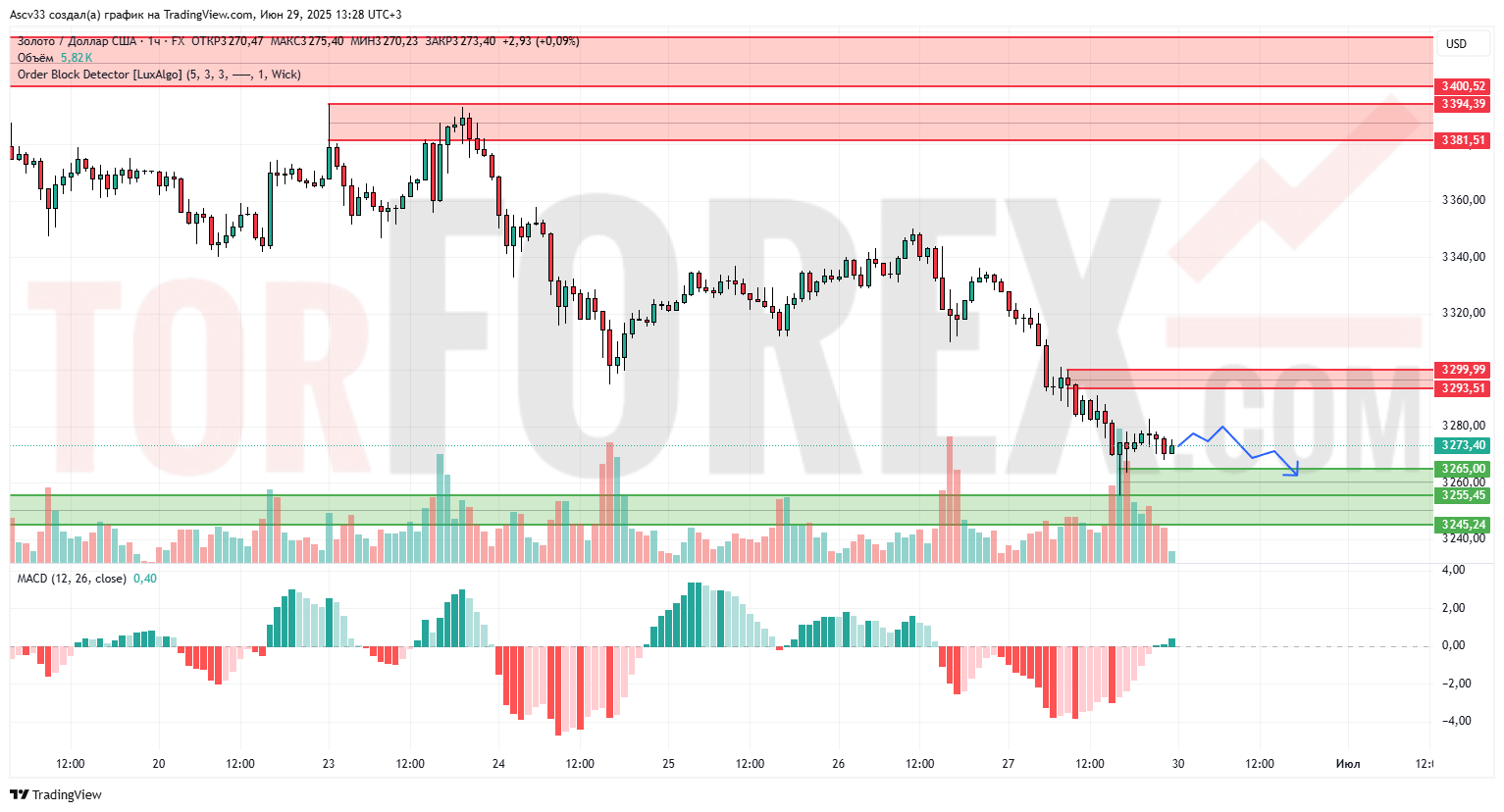 3265–3260 — ближайшая поддержка, где был зафиксирован отскок.
