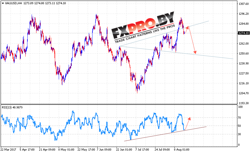 XAU/USD прогноз цен на Золото на 16.08.2017. Ожидается падение