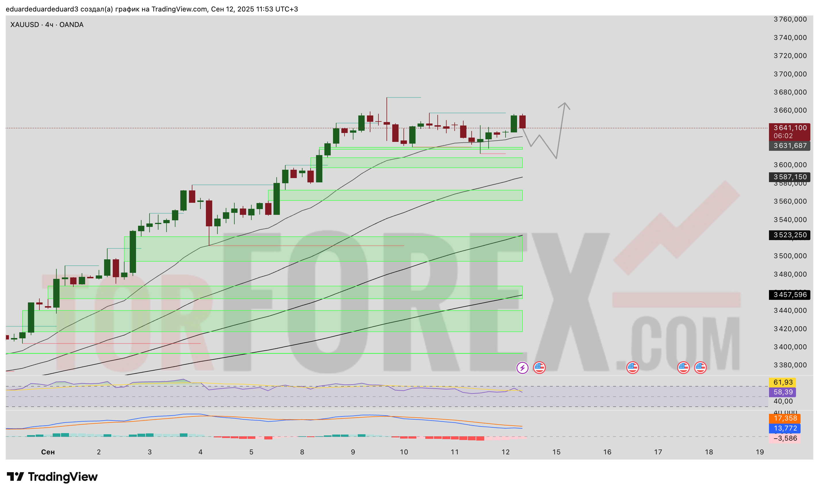 Оптимальные входы в покупки могут находиться в районе 3587–3523, с целями 3650–3720.