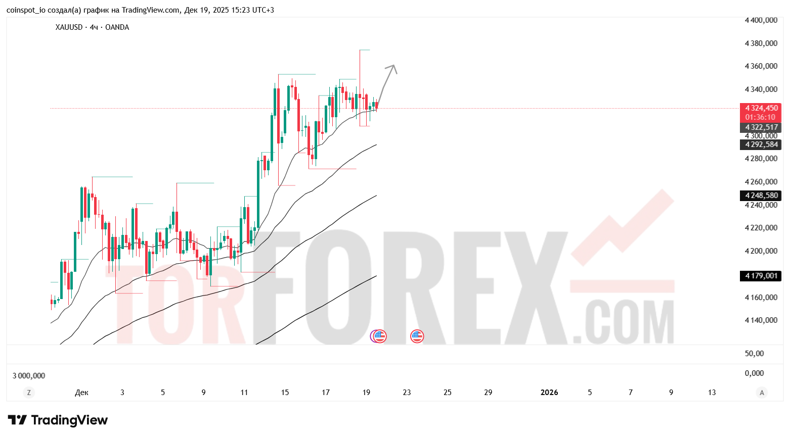 На 20 декабря 2025 года XAU/USD демонстрирует признаки консолидации с потенциалом к росту. Основной сценарий — движение к 4 360–4 380 USD при пробое сопротивления. Альтернативный сценарий — снижение к 4 278–4 240 USD при отказе от уровня 4 340 USD.