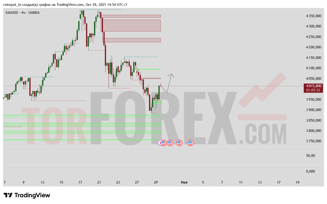 - При снижении ниже $3980 вероятна коррекция к зоне $3950–$3930.