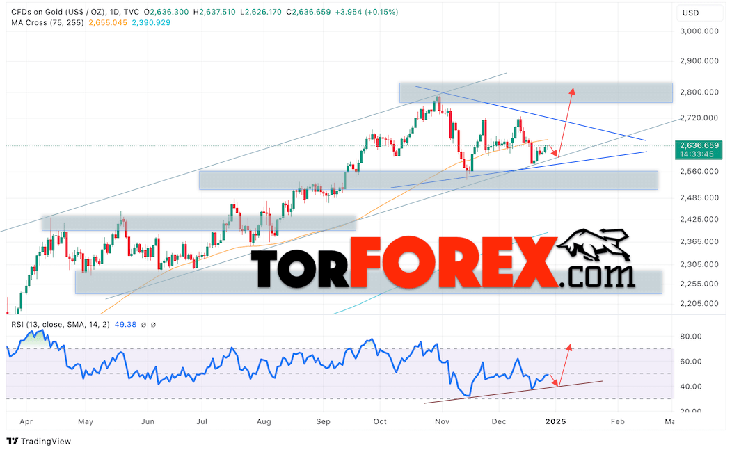 Золото прогноз на 30 декабря 2024 — 3 января 2025