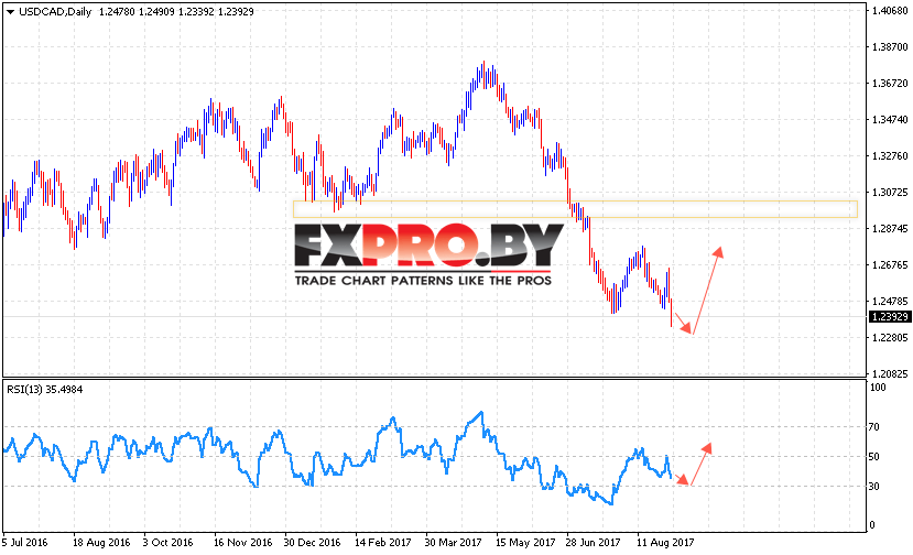 Таким образом, Канадский Доллар прогноз на 4 — 8 сентября 2017 предполагает попытку отскока и роста пары выше уровня 1.2750, дополнительным сигналом выступает формирование разворотной модели на индикаторе относительной силы, отменой варианта роста выступит пробой уровня 1.22.