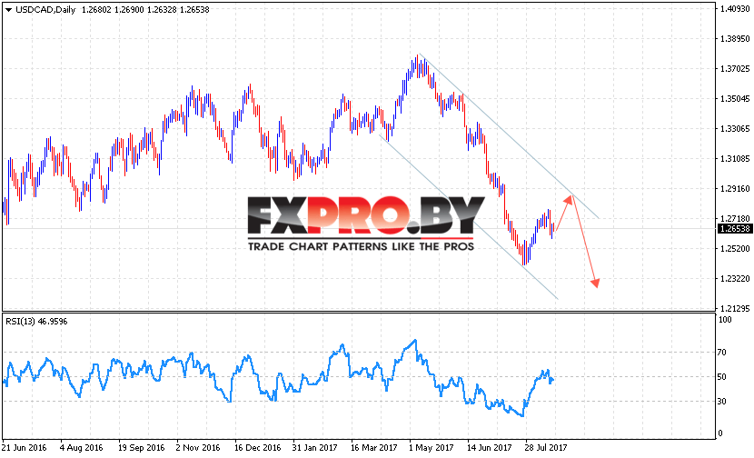 Валютная пара Канадский Доллар к Доллару США USD/CAD завершает торговую неделю вблизи уровня 1.2653. На данный момент стоит ожидать продолжения роста пары в область верхней границы нисходящей модели 5-0.