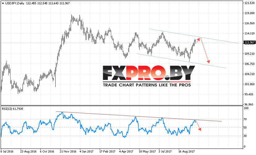 Таким образом, USD JPY прогноз Доллар Иена на 25 — 29 сентября 2017 предполагает тест верхней границы канала вблизи уровня 112.40, откуда стоит ожидать продолжения снижения в область ниже уровня 106.50, отменой может стать пробой области 113.50, что укажет на продолжение роста пары Доллар Иена.