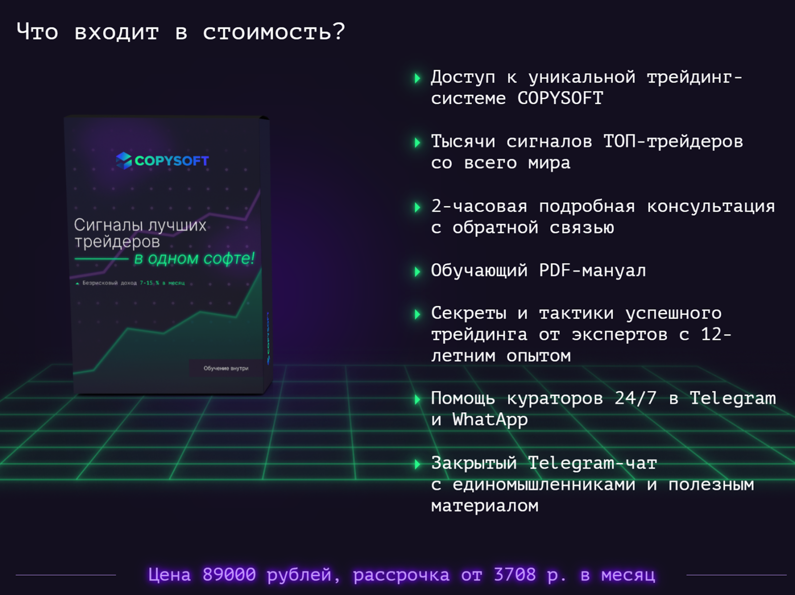 Цена Копи Софт составляет 89 тыс. рублей. За эти деньги клиентам доступны следующие возможности: