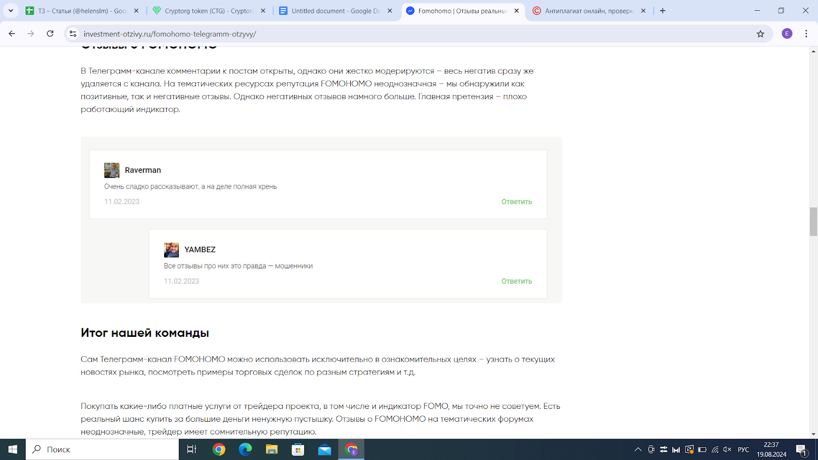 Анализ деятельности проекта Fomohomo: отзывы о Fomohomo от настоящих пользователей