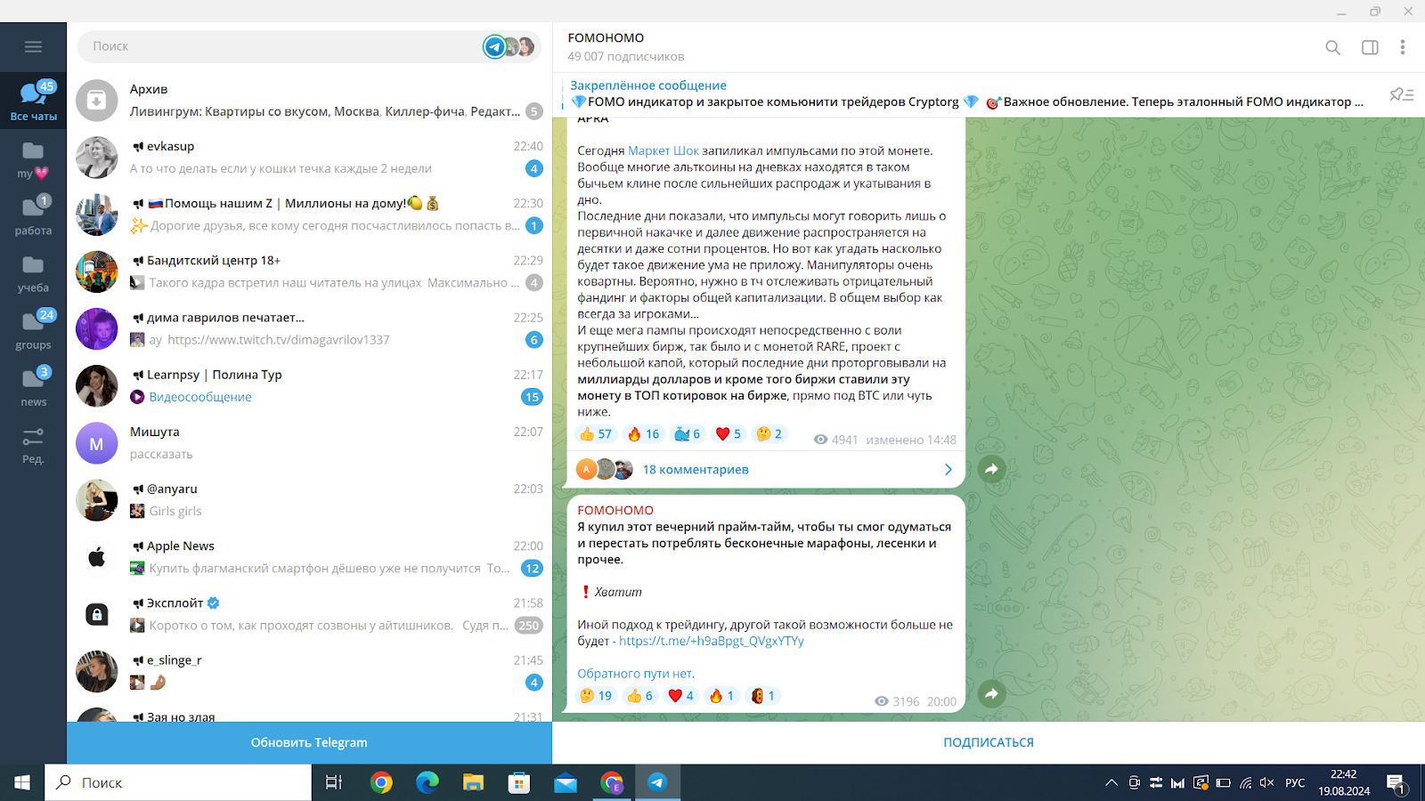 Обзор телеграм канала fomohomo