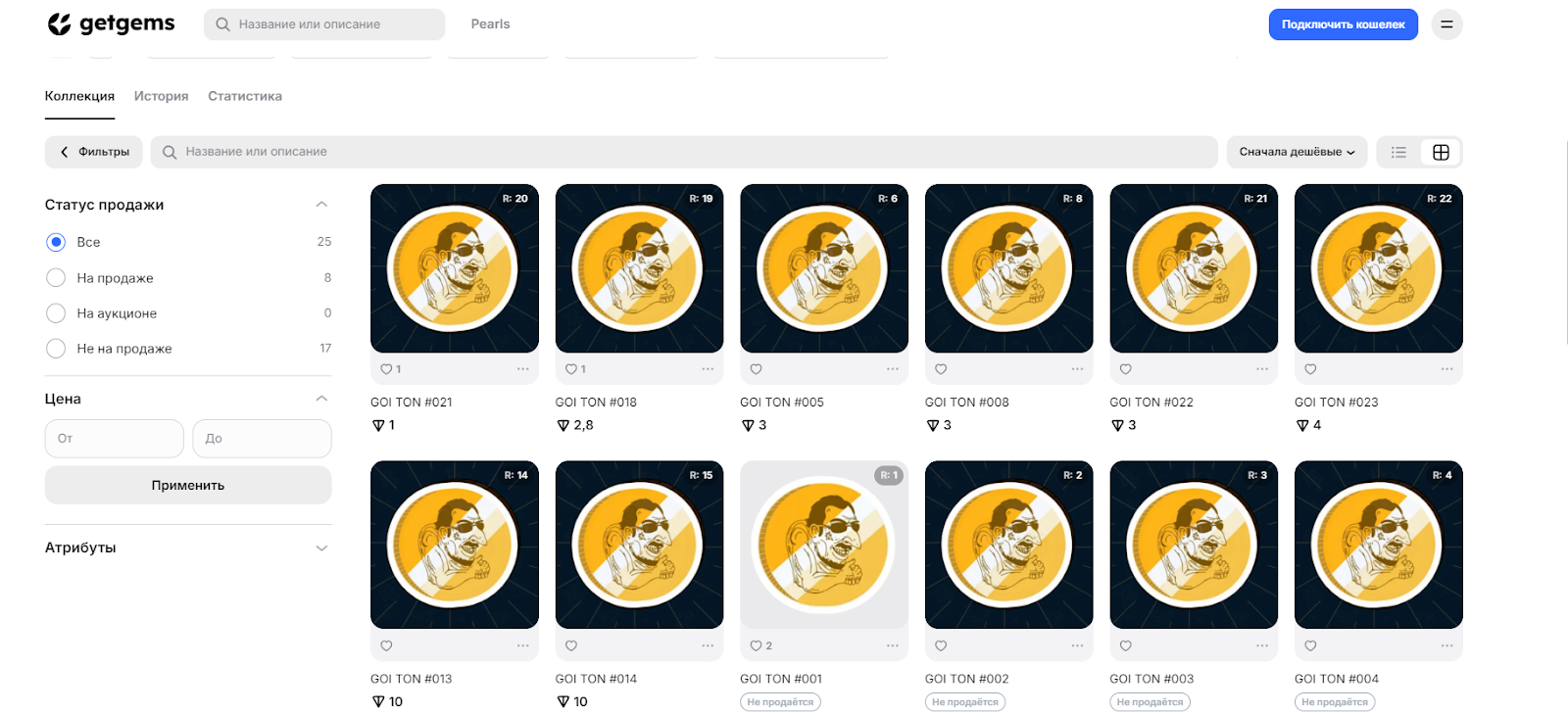 В дополнение к Гои Коин были выпущены NFT Goi Тон. Их всего 25, они выставлены на гетгемс по цене от 1 Тона. Некоторые НФТ были проданы за огромные суммы — 666 тон, 100 тон. Последняя продажа состоялась еще в июне, с тех пор NFT Goi crypto не продаются. В настоящее время в Телеграмм канале НЕ МОРГЕНШТЕРН более 1,1 млн подписчиков, контент носит развлекательный характер, его читает около 70 000 пользователей. Стоящего в нем ничего нет, про токен Гои автор больше не пишет.