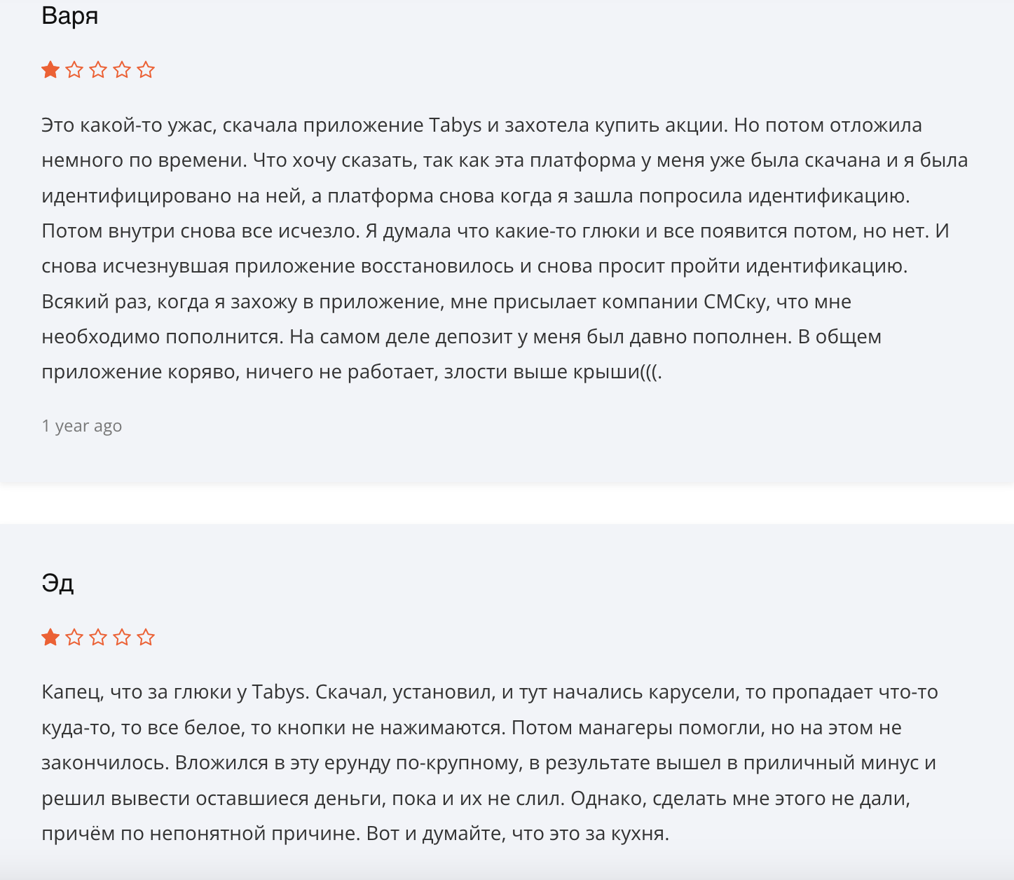 - Большое количество негативных отзывов на работу инвест-платформы. Клиенты сообщают о сбоях в работе приложения, отсутствии квалифицированной техподдержки и невозможности вывода средств. Эти факторы доказывают, что приложение tabysapp – скам и развод для неопытных новичков;