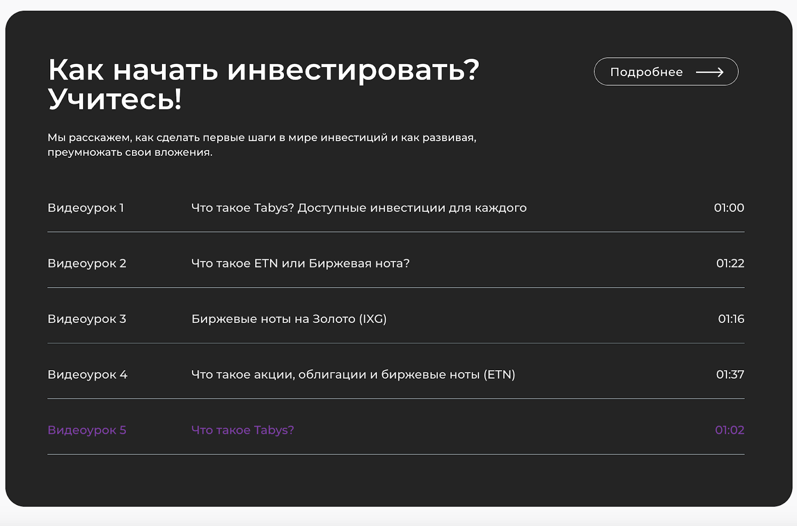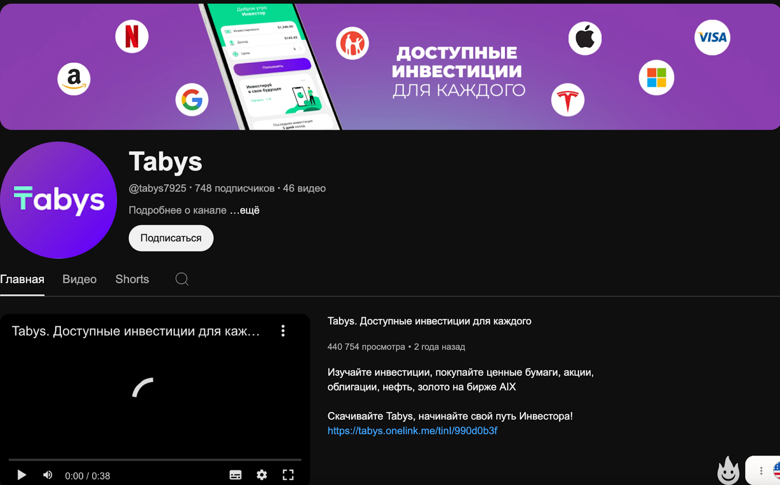 Ютуб-канал об инвестициях с Tabys можно найти под ником tabys7925. Видео публикуются ежемесячно, но не пользуются спросом среди зрителей. Просмотры под роликами не достигают и тысячи.