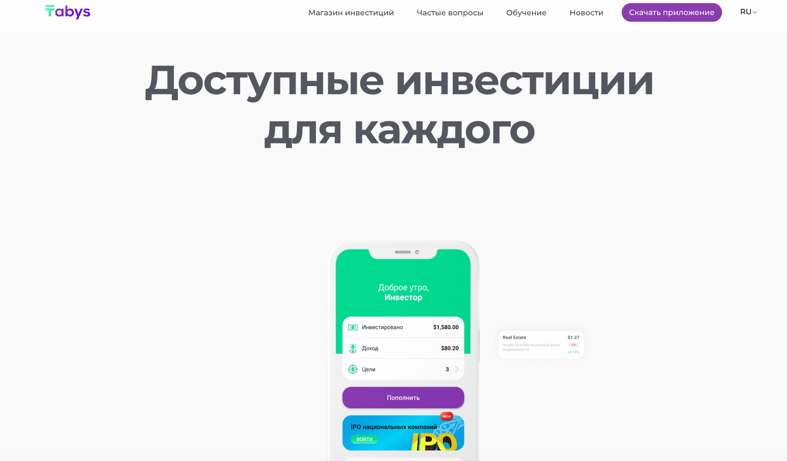 Tabys – инвестиционная онлайн-платформа, которая обещает потенциальным инвесторам легкий доступ к фондовым рынкам Казахстана и США.