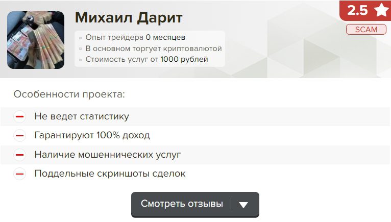 Отзывы о Михаил Дарит от реальных клиентов отсутствуют, что обусловлено следующим: