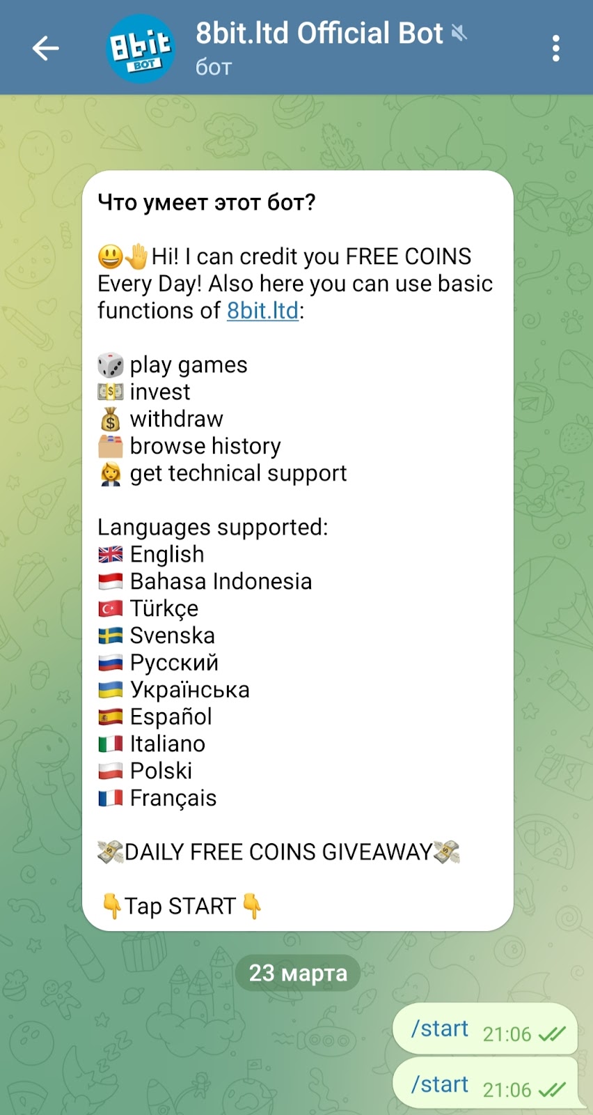 На март 2025 года не работают ни сайт проекта 8Bit Ltd, ни его бот в Telegram, который можно найти по ссылке PseofficialBot.