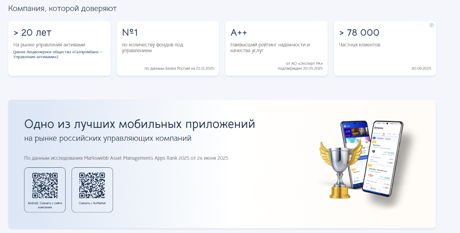 Организация входит в структуру «Группы Газпромбанка». Генеральным директором выступает Руссов Михаил Алексеевич. Сервис занимает место в пятерке крупнейших организаций России по объему активов под управлением.