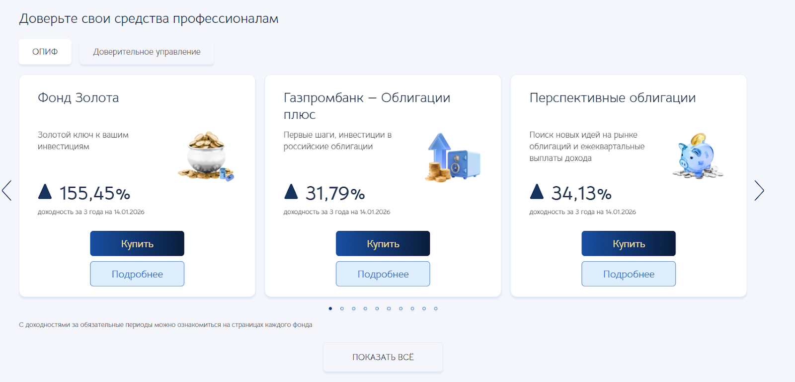 Структура портфелей в большинстве случаев состояла только из облигаций Газпрома и Газпромбанка, которые показывали убытки или низкую доходность. В это время акции и другие инструменты занимали малую долю вопреки обещаниям инвестирования в прибыльные компании.
