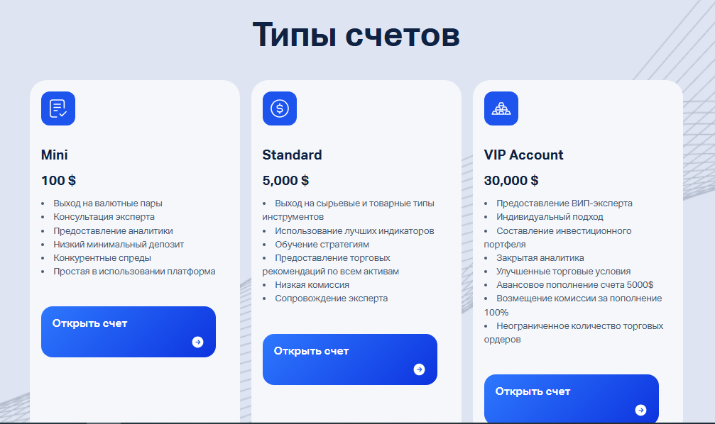 - VIP-account – от 30 тыс. USD.
