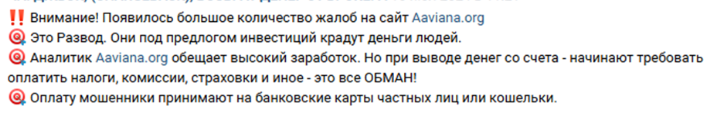 Если бы перед отправкой средств Aaviana Org люди сначала читали отзывы о них, это уберегло бы многих от финансовых потерь!