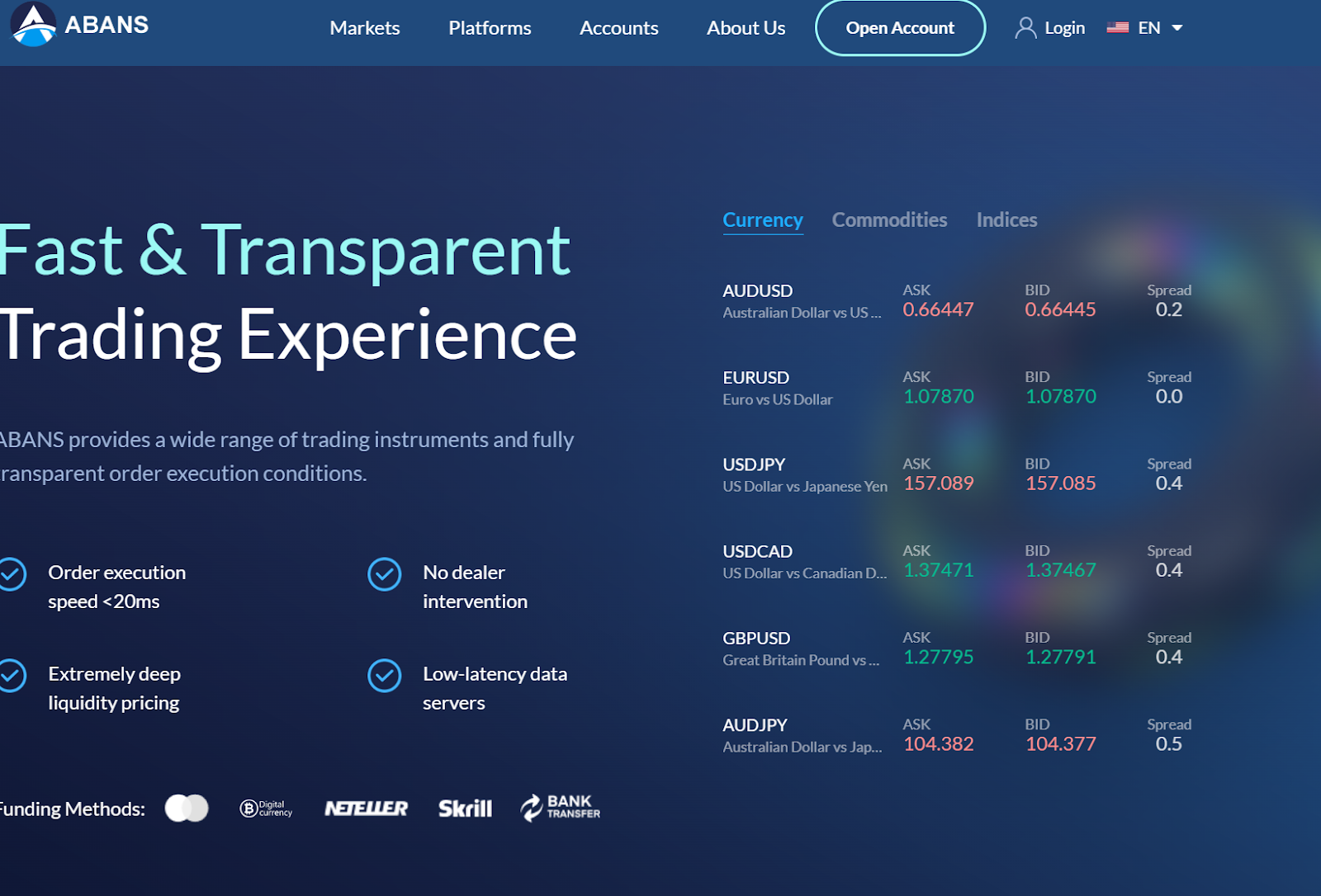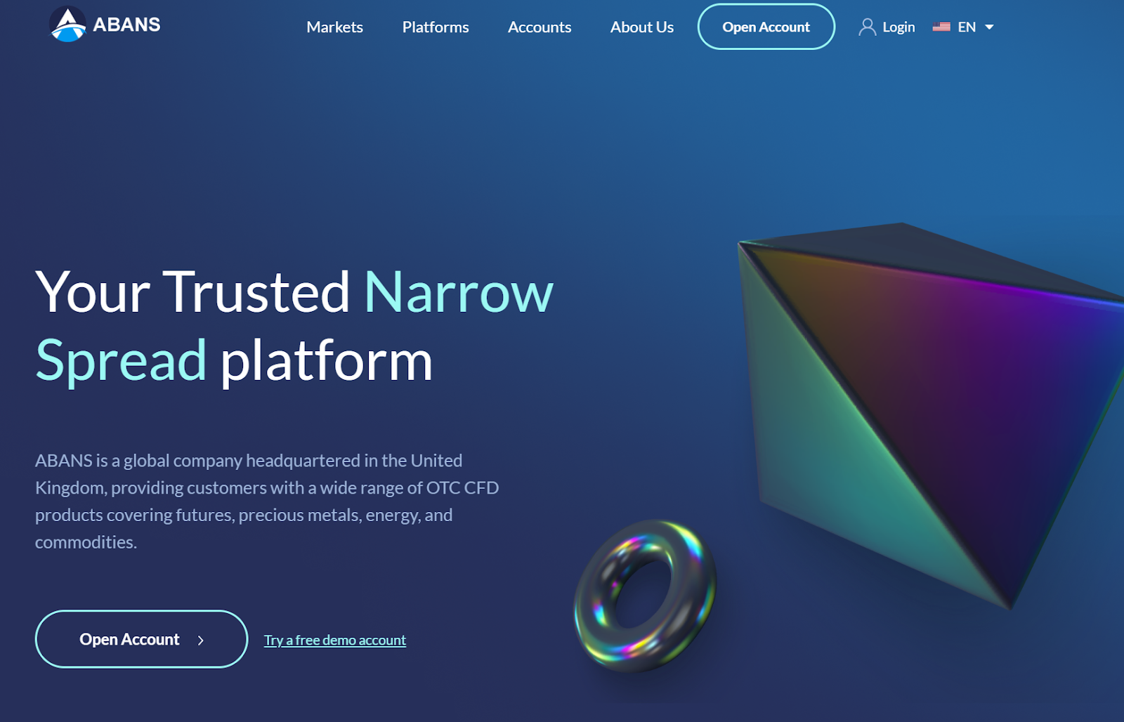 Сайт abansglobal com позиционируется как платформа для предоставления финансовых услуг. Услуги связаны с торговлей CFD-продуктами. Компания делает акцент на привлекательных условиях, таких как: