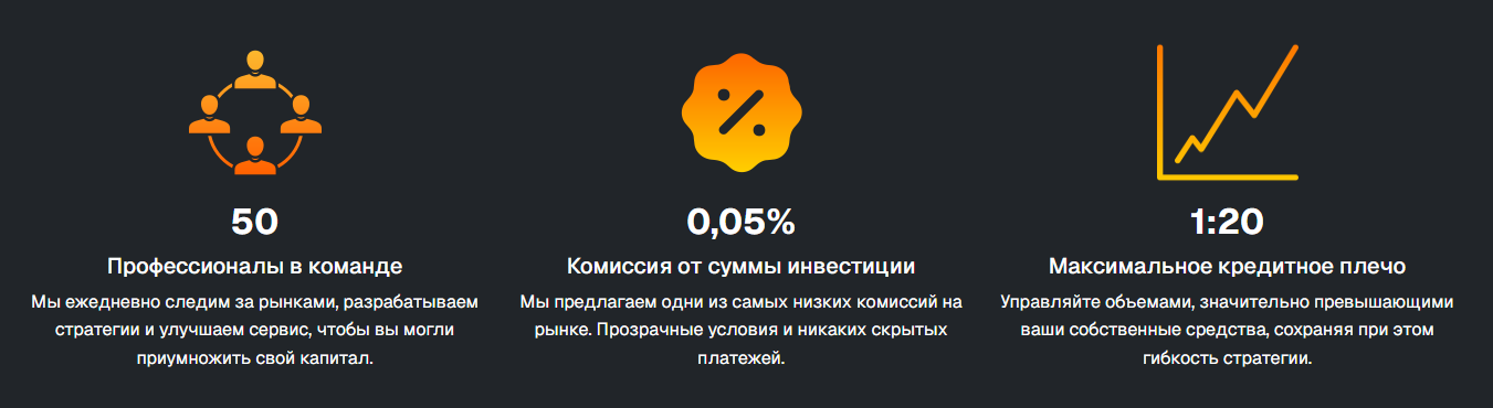 Заявленная комиссия – 0,05 %. Спреды называют конкурентными. Минимальный депозит составляет 150 000 рублей по данным пользователей. Плечо достигает 1:20. Средний размер портфеля – 45 000 долларов по данным с сайта.