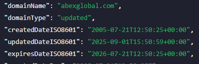 Проверка выявила серьезные проблемы. Домен abexglobal com создали в 2005 году, но текущие владельцы купили его 1 сентября 2025. Старый домен – классический трюк мошенников для солидности.