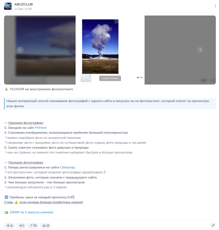 Проект, в основном, продвигает так называемые “абузы”. Они помогают находить лазейки в различных сервисах и зарабатывать на этом. Пример представлен на скриншоте ниже.