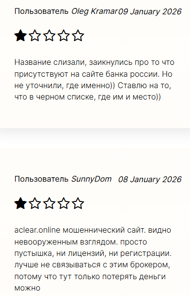 Отзывы об aclear online в сети исключительно негативные. Пользователи активно предупреждают об опасности. Люди получали рекламу сайта в соцсетях. Многие узнали, что проект незаконный. Без документов и с украденным названием бренда.