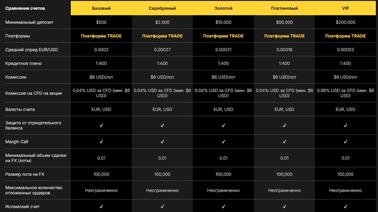 Минимальный депозит – 500 долларов. Кредитное плечо – 1:400 явно превышает лимиты, разрешенные большинством регулирующих органов, например, ESMA ограничивает плечо до 1:30.