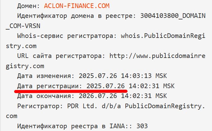 Домену aclon finance com чуть не более 3 месяцев.