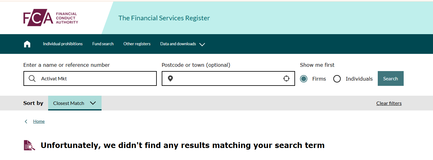 На сайте activatmkt com брокер указывает, что имеет сразу 4 лицензии: комиссии Люксембурга, Вануату, Дубая и Англии. Ни одной скан-копии компания не предоставляет. Поэтому нам пришлось проверить их наличие на сайтах обозначенных регуляторов. К сожалению, ни одной лицензии обнаружить не удалось. В регистрах указанных организаций брокер не значится.