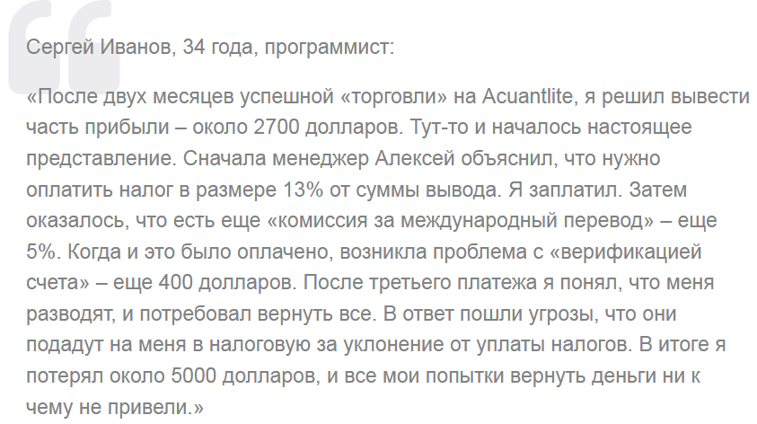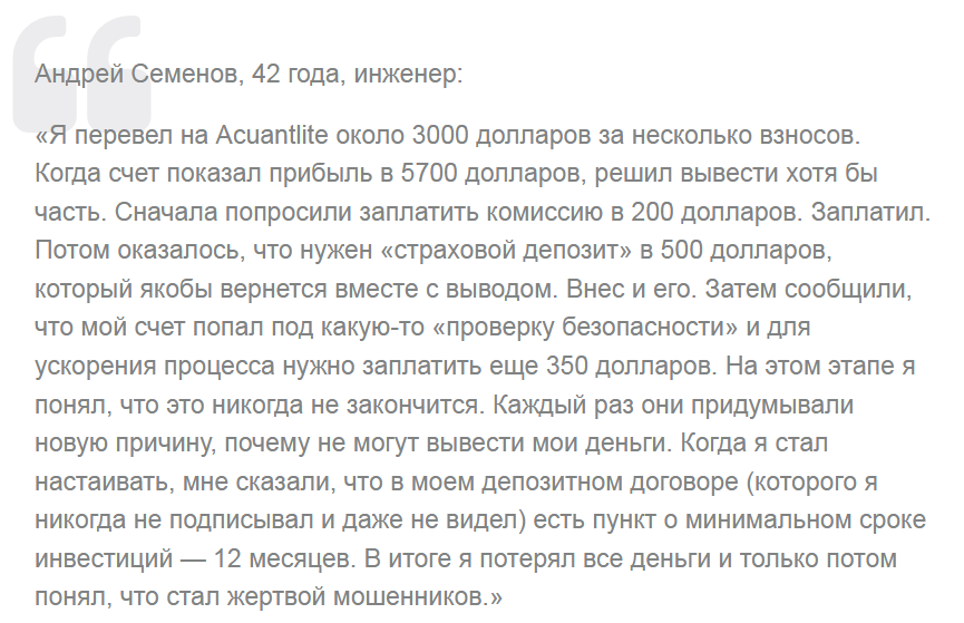Обзор брокера Acuantlite: анализ платформы для заработка «Акуантлайт», отзывы пользователей
