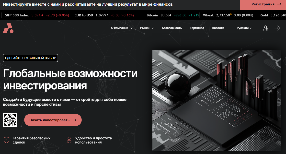 Сайт брокера Acuantlite com усыпан кнопками «Начать инвестировать». Разработчики на каждом шагу подталкивают «сделать правильный выбор» и зарегистрироваться на платформе. Ведь сервис имеет стильный, простой и удобный интерфейс, а также гарантирует безопасность сделок.