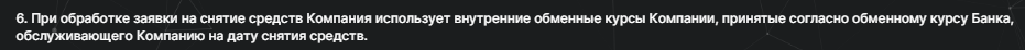 Во внутренних документах содержится информация, раскрывающая суть оказания финансовых услуг. При выводе средств пользователи могут столкнуться с сюрпризами. Так, руководство проекта сообщает, что при снятии денег с кошелька действуют внутренние обменные курсы. Подробная информация о тарифах и сборах не опубликована.
