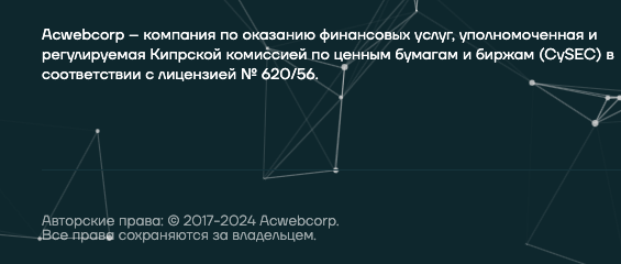 Acwebcorp – брокер, который предлагает выгодно торговать при помощи «инновационных инструментов». Заявляет, что его деятельность контролируют сразу 4 финансовых учреждения.